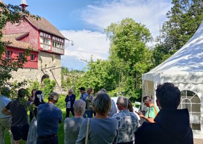 Den Treffpunkt am Samstag beim MoMö Museum bei der traditionsreichen Firma Möhl in Arbon war leicht zu finden. Die Fühhrung endete mit der Degustation der breiten Palette von Apfelsaft und ähnlichem. Weiter gings zum Mittagessen und anschliessend zum Wasserschloss in Hagenwil, das ist auf jeden Fall einen Besuch wert.