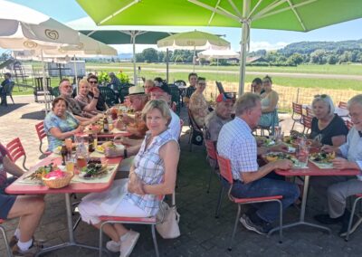 Für manche startete das Treffen bereits am Freitag-Abend bei einem gemütlichen Nachtessen. Für die meisten Teilnehmenden war aber der erste Treffpunkt in Aesch, bei brütender Hitze beim Elvis-Presley-Museum. Nach einer Führung und vielen Eindrücken vom ‚King of Rock ’n‘ Roll‘ konnten wir uns beim Mittagessen beim Flugplatz Triengen erholen. Nachmittags stand eine Besichtigung der Distillierie Hecht in Sempach auf dem Programm.