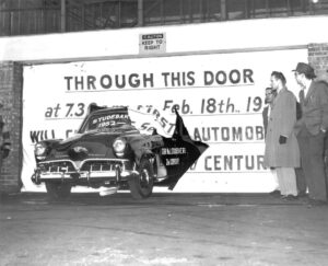 Auf diesem Dateifoto vom 18. Februar 1952 fährt ein Studebaker Champion durch ein Schild zur Feier des hundertjährigen Bestehens der Studebaker Corp. und des Beginns der nächsten 100 Jahre. Auf der Fahrerseite steht: „Car No. 1 Studebaker’s 2nd century“. Am 9. Dezember 1963 gab das Unternehmen bekannt, dass es die Produktion in South Bend einstellen und in sein Werk in Hamilton, Ontario, verlagern würde, das 1966 geschlossen wurde.