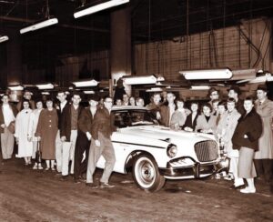 Dieses Bild aus den 1950er Jahren zeigt eine Gruppe von Schülern der örtlichen High School, die an Junior Achievement teilnahmen. Provincial Products, gesponsert von der Studebaker Corp., war das „Unternehmen“, dem diese Schüler von 1956-57 angehörten. Auf dem Foto posieren sie neben einem Studebaker Hawk, der gerade vom Fließband zu kommen scheint.